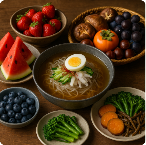 여름철에는 뜨거운 밥보다 시원한 면 요리가 선호됩니다. 대표적인 여름 음식으로는 콩국수, 메밀국수, 막국수, 냉면 등이 있지만, 같은 국수라 해도 지역에 따라 국물의 구성, 면발의 굵기, 고명의 성격이 다르게 나타납니다.